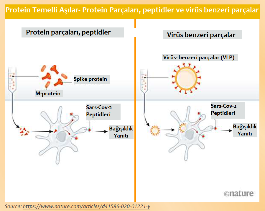 Bu aşı teknolojisi protein ve sentetik biyoloji alanındaki teknolojik gelişmeler ile oluşturulmuştur. Bu tür aşılarda virüse ait proteinleri ya da virüsün bazı parçalarını bağışıklık sistemini eğitmek üzere kullanılır. Covid 19 için ise Sars-Cov-2 virüsünun Spike proteini (taç ya da başak proteini) ya da M proteini bu amaçla izole edilmiş ya da sentetik olarak üretilerek aşı formuna dönüştürülmektedir. Bu aşı teknolojisi, yeni nesil grip aşısıları için de kullanılmaktadır. Bu aşı teknolojisi geliştirilmesi nispeten kolay olmakla birlikte bağışıklık yanıtı düşük olma riskini taşımaktadır.